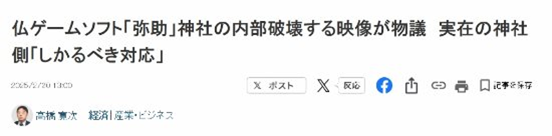 此次引发争议的神社是拥有1400多年历史的“播磨国总社射楯兵主神社”(兵库县姬路市)。随着游戏发售日的临近,网络上出现了弥助在神社内肆意破坏的视频,引起轩然**。视频中,神社以英文“itatehyozu Shrine”显示。虽然这只是玩家操作下的游戏画面,但至少在先行体验版中,神社内部是可以被破坏的。社交媒体上涌现出了“严重蔑视日本文化”、“侮辱神道”、“毫无顾忌”等批评之声。