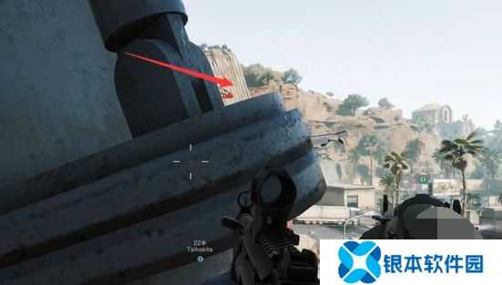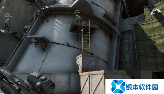 2、我们在工业撤离点是可以看到一个破损的建筑,我们在这从梯子往上面爬。