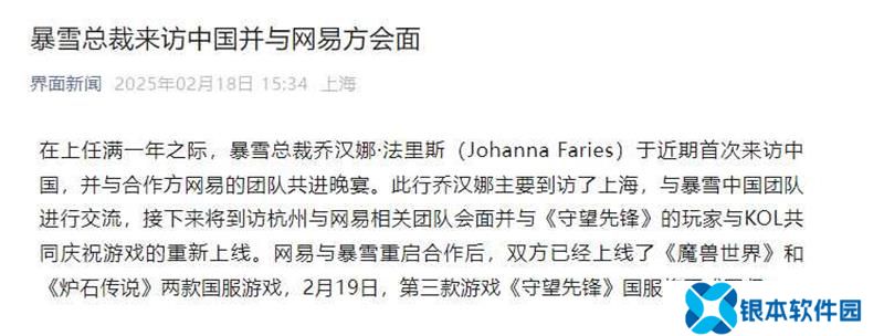 《守望先锋》国服也将于2月19日正式回归,预计将为玩家带来全新的游戏体验和激烈的竞技对决。此次系列活动不仅展示了暴雪对中国市场的高度重视,也为双方未来进一步深化合作奠定了坚实基础。