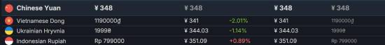 最便宜的区是越南,换算为人民币大约为341元,与国区的348元相差无几。最贵的区是卡塔尔,换算为人民币约569元,比国区贵约63%。港服排在“低价区”和“高价区”的中间,约人民币478元。