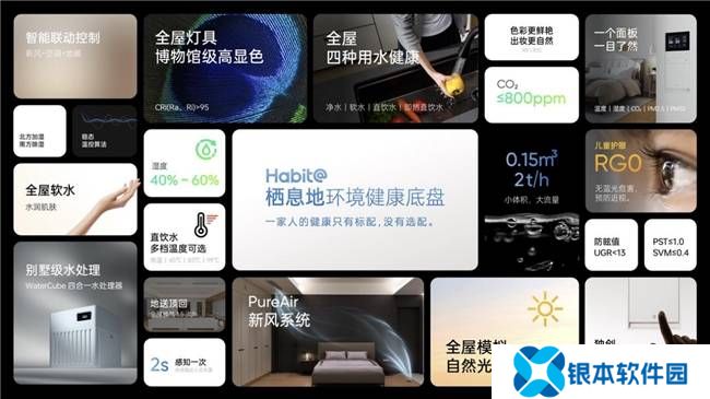空气环境系统集成空调、地暖、新风和加湿除湿四大功能,通过栖息地“PureAir新风系统”,统筹管理温度、湿度、PM2.5、PM10和二氧化碳浓度五项健康指标,用户可通过可视化面板掌握空气健康动态;水系统中,创新研发占地仅0.15立方米的“WaterCube四合一处理器”,在有限空间内实现净水、软水、直饮水的精准分级供应,让三居户型也能享受别墅级用水品质;栖息地的光环境模拟自然日光,全屋采用博物馆级高显色光源,还原真实色彩,为用户提供高品质的光环境。