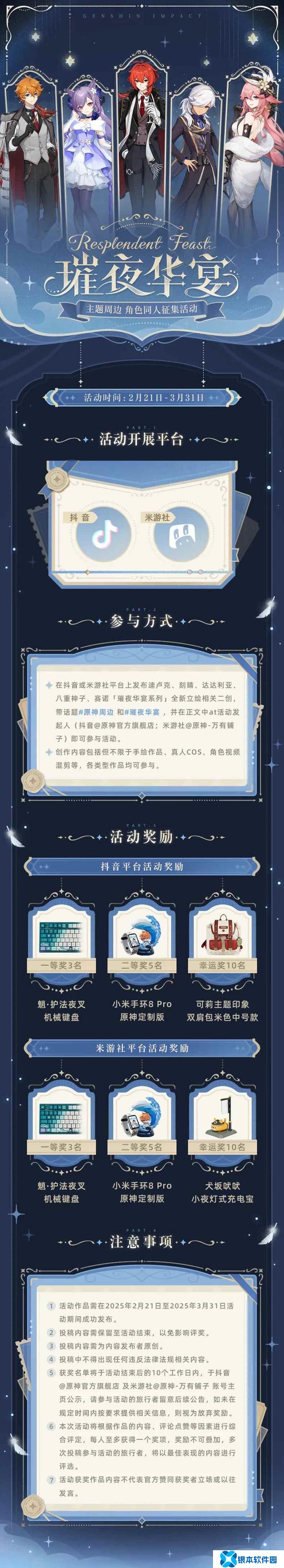 此外,「璀夜华宴」主题周边 角色同人征集活动也在进行中,期待旅行者的投稿作品。
