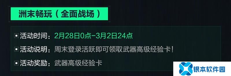 活动说明:周末登录活跃即可领取武器高级经验卡!
