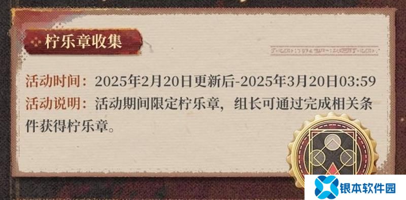 柠乐章收集活动时间:2025年2月20日更新后-2025年3月20日03:59活动说明:活动期间限定柠乐章,组长可通过完成相关条件获得柠乐章。