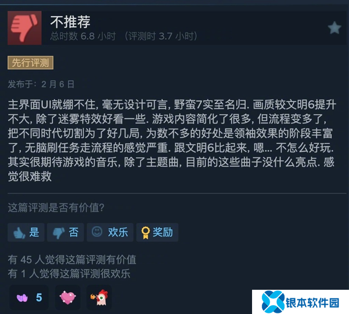 《文明7》近日推出了豪华版与奠基者版的先行游玩体验,然而玩家的反响却并不如预期。在Steam上,尽管该作目前已有800多条评价,但好评率仅为35%,整体评价呈现出“多半差评”的局面。