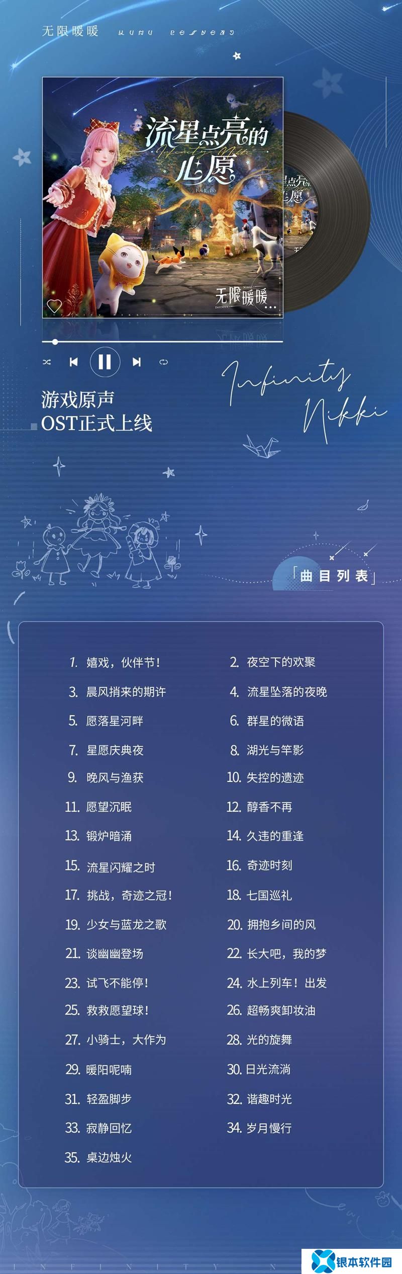 《无限暖暖》官方宣布游戏全新OST正式上架音乐平台,首次有《无限暖暖——蔷薇与曙光之约》、《无限暖暖——流星点亮的心愿》、《无限暖暖——花焰迎新岁》三部OST正式上架,包含百余首游戏内原声音乐,给各位玩家以听觉上的享受。