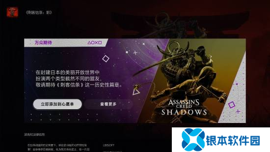 《刺客信条:影》将于3月20日发售,近日本作登上PS5商店首页,玩家选中PlayStation Store版块即可查看。
