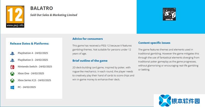 “投诉委员会认为,尽管该游戏解释了扑克的各种牌型,但这款带有奇幻元素的类 Rogue-like 牌组构建游戏应被定为 PEGI 12 分级。”