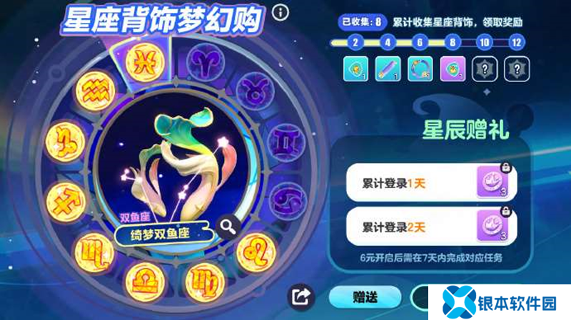 活动期间购买并完成任务便可解锁6枚彩虹币福利,收集指定数量的星座典藏背饰还可解锁更多奖励。