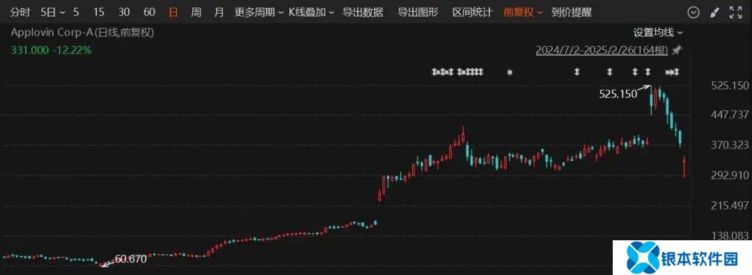 AppLovin是纳斯达克表现最好的股票之一,去年一年就上涨735%,去年11月通过特别调整加入纳斯达克100指数。从2024年初开始,AppLovin的估值从130亿美元上涨至1110亿美元。