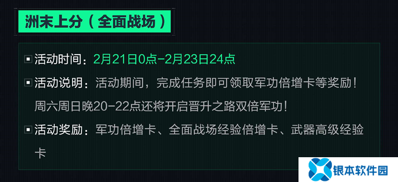 活动奖励: 军功倍增卡、全面战场经验倍增卡、武器高级经验卡