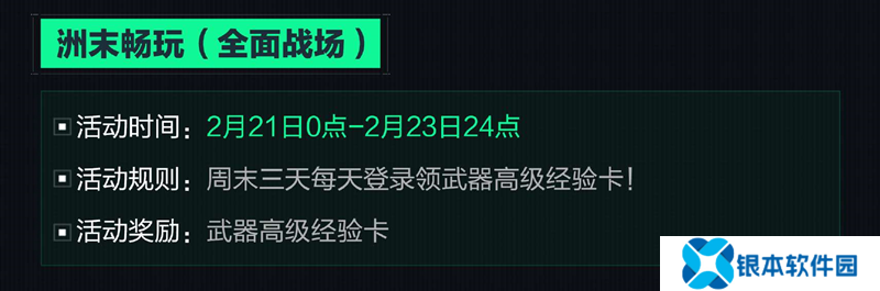 活动规则: 周末三天每天登录领武器高级经验卡!