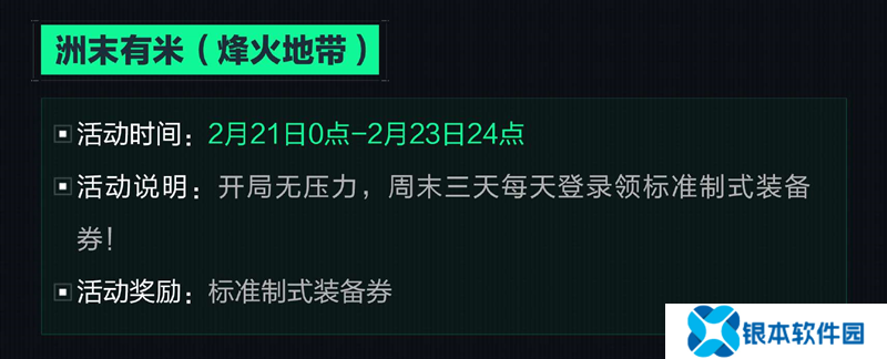 活动说明: 开局无压力,周末三天每天登录领标准制式装备券!
