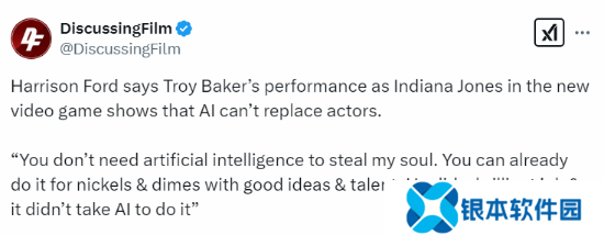 哈里森·福特表示,特洛伊·贝克在《夺宝奇兵》中的演技证明人工智能还无法取代演员,他说到:“你不需要人工智能来窃取我的灵魂。你只需要用好点子和才华就能做到这一点。他做得很出色,不需要人工智能就能做到这一点。”