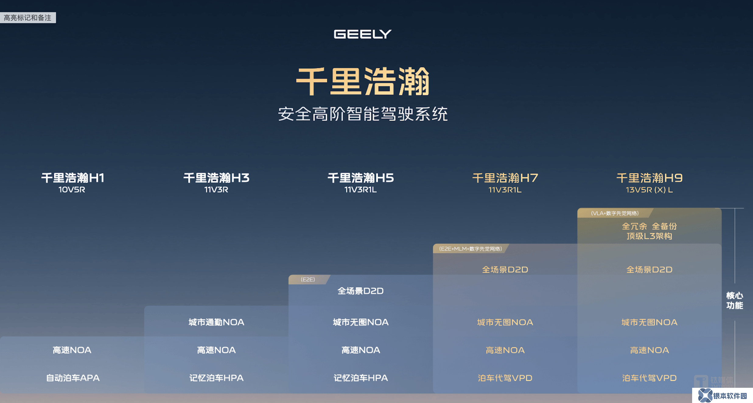 同时,今年下半年,吉利银河品牌全新及改款产品,都将全系搭载不同层级的智驾方案。同时,吉利银河品牌还将发布一款搭载千里浩瀚H7层级智驾方案。