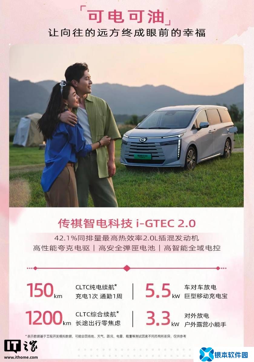 广汽传祺E8 PRO+ MPV在技术配置上同样引人注目。该车搭载了传祺智电科技i-GTEC 2.0系统,配备了同排量最高热效率达42.1%的2.0L插混发动机、夸克电驱、弹匣电池和智能全域电控。其CLTC纯电续航里程为150公里,综合续航里程则高达1200公里,并支持5.5kW车对车放电和3.3kW对外放电功能。