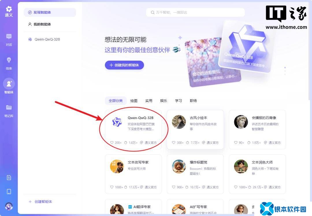 ▲ 在通义 App 或网页端选择 Qwen-QwQ-32B 智能体
