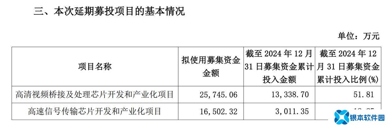 龙迅股份今日(2月27日)在年报披露的同时,也宣布其首发募投项目延期。该公司高清视频桥接及处理芯片开发和产业化项目、高速信号传输芯片开发和产业化项目的达到预定可使用状态日期,从2025年3月延期到2025年12月。