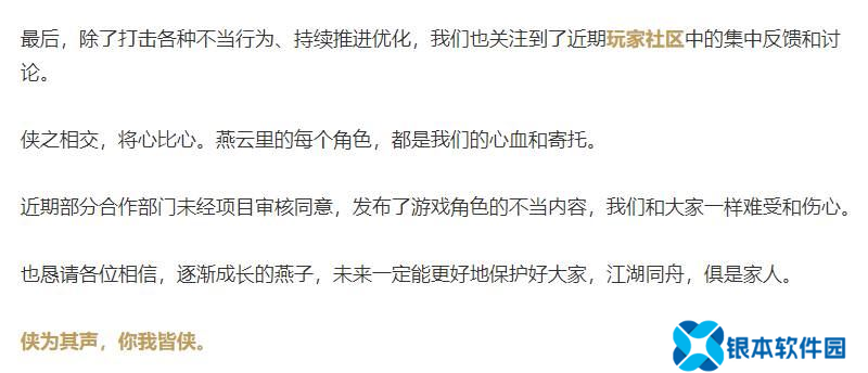作为回应,《燕云》在今日的公告中提到:“近期部分合作部门未经项目审核同意,发布了游戏角色的不当内容,我们和大家一样难受和伤心。也恳请各位相信,逐渐成长的燕子,未来一定能更好地保护好大家。”