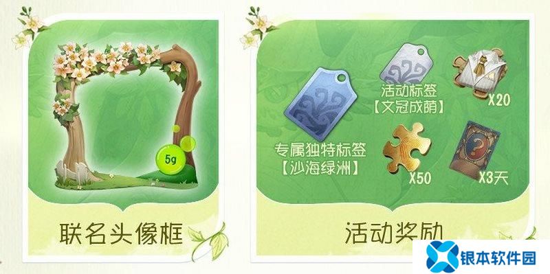 个人累积浇水达2000g,即可分别获得活动标签-【文冠果】/线上石头像框、联名头像框等。