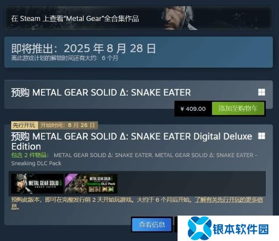 《合金装备3:重制版》(METAL GEAR SOLIDΔ:SNAKE EATER)将于2025年8月28日正式发售,游戏预购已于2025年2月13日开启。