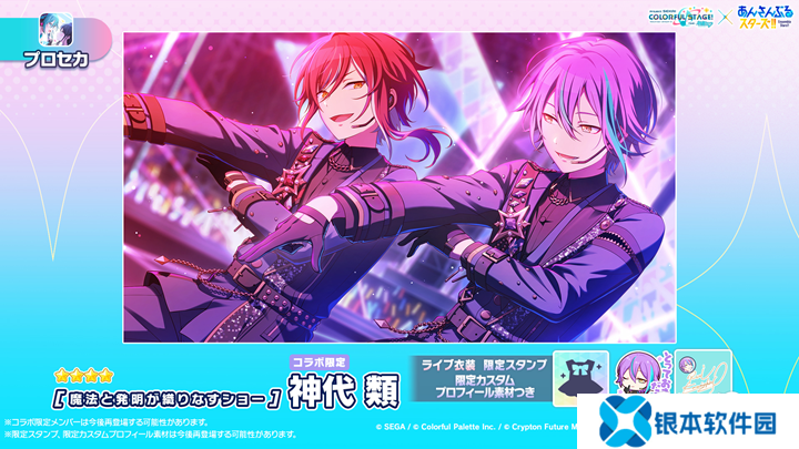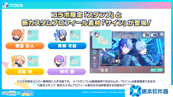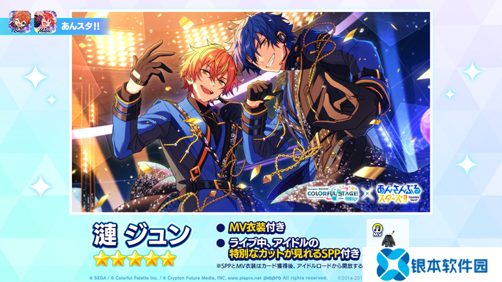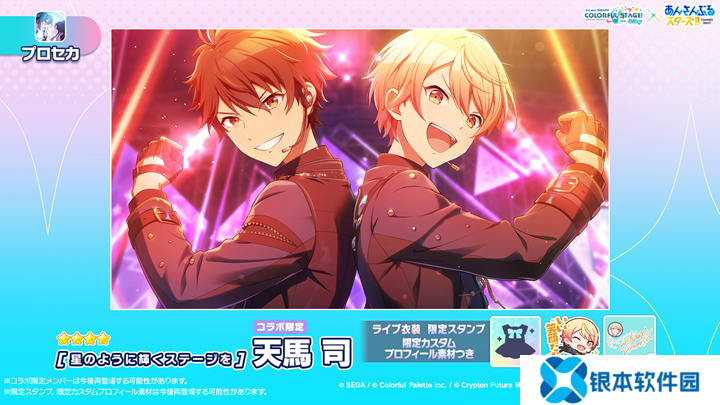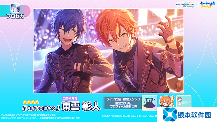 此次联动还公开了双方游戏的联动卡面,包括《世界计划》的联动限定★4成员东云彰人、青柳冬弥、天马司、神代类,以及《偶像梦幻祭》的联动限定★5成员涟纯、守泽千秋和★4成员濑名泉、逆先夏目。下面是卡牌的卡面预览。