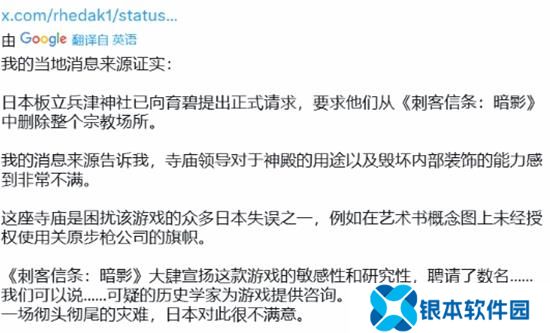 神社负责人对游戏擅自使用其宗教建筑,并允许玩家在游戏中破坏内部场景的设定表达了强烈不满。这一行为被视为对日本文化和宗教的不尊重,甚至被指责为亵渎。此前,育碧曾声称游戏经过严谨的历史文化考据,但此次事件引发了日本社会的集体抗议。
