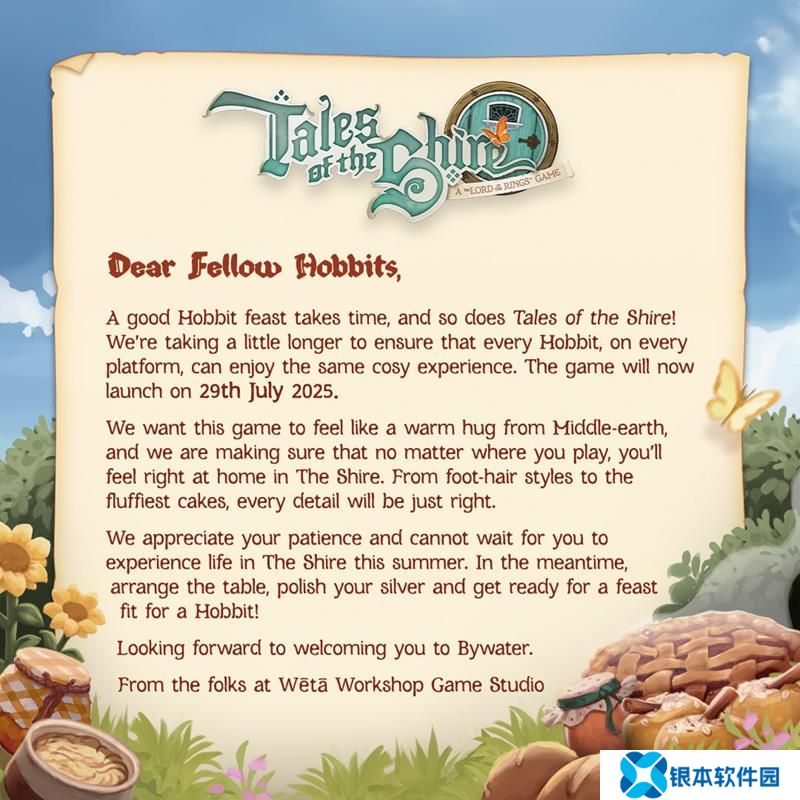 亲爱的霍比特同胞们,一顿丰盛的霍比特盛宴需要时间,同样地,《夏尔传说》也需要时间!为了让每个平台上的每位霍比特人都能享受这份温馨的体验,我们决定多花一些时间进行准备。游戏现定于2025年7月29日发布。我们希望这款游戏能给您带来如同来自中土世界的温暖拥抱,并确保无论您在哪里游玩,都能感受到在夏尔的家一般的温馨。从脚毛风格到最蓬松的蛋糕,每一个细节都将恰到好处。感谢您的耐心等待,我们也迫不及待地想让您在今年夏天体验夏尔的生活了。在此期间,请布置好餐桌,擦亮您的银器,准备迎接一场适合霍比特人的盛宴吧!期待在傍水镇欢迎您的到来。— Wētā Workshop游戏工作室敬上