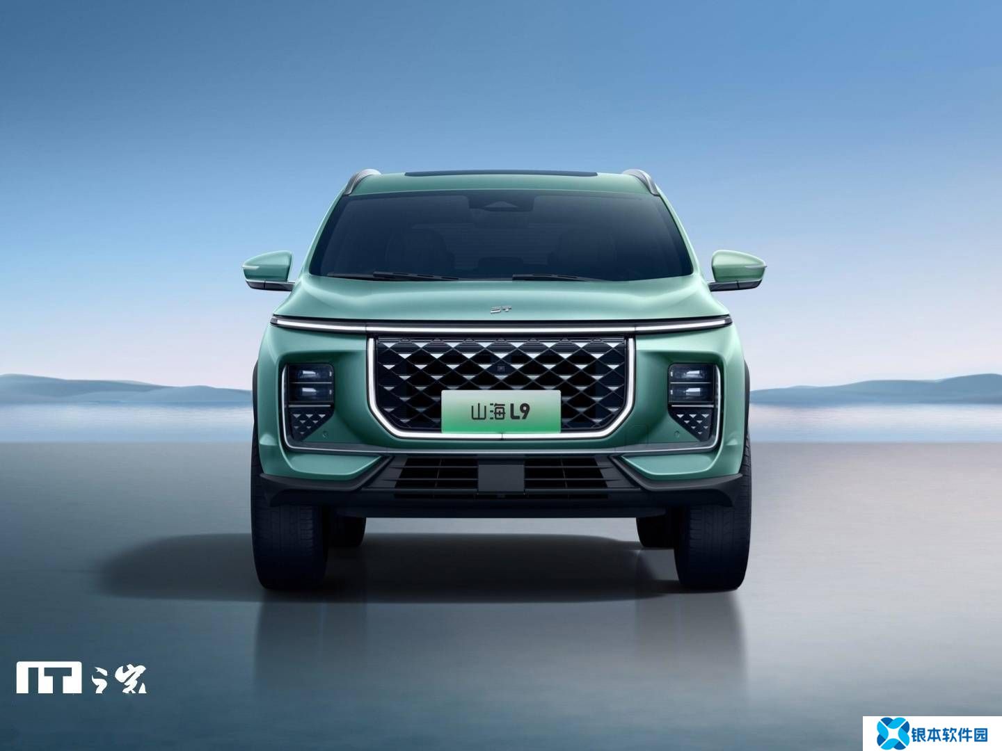 新款捷途山海L9在外观设计上,虽然保留了现款车型的整体轮廓,但在前脸部分进行了大胆创新。新车采用了封闭式格栅设计,搭配分体式大灯组,上部日行灯组以三段贯穿式造型呈现,而下部灯组两侧则装饰有L型元素,提升了前脸的视觉冲击力。