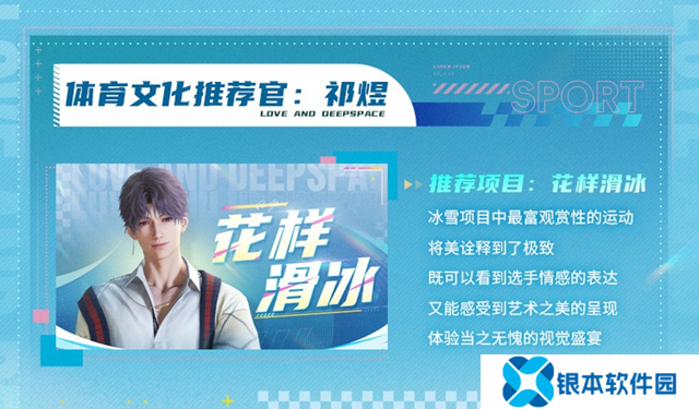 祁煜:推荐项目为“花样滑冰”,他将优雅旋转,翩若游鱼,带领玩家们欣赏花样滑冰的艺术之美和技巧之精湛。