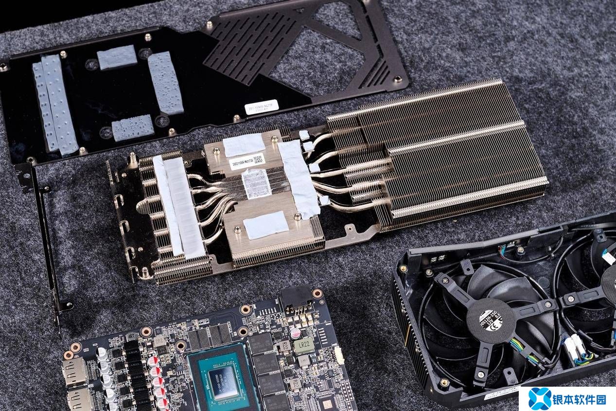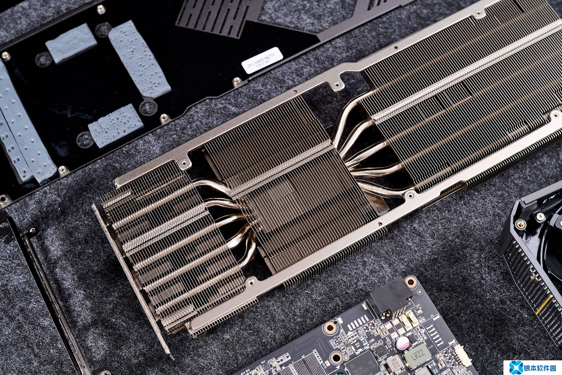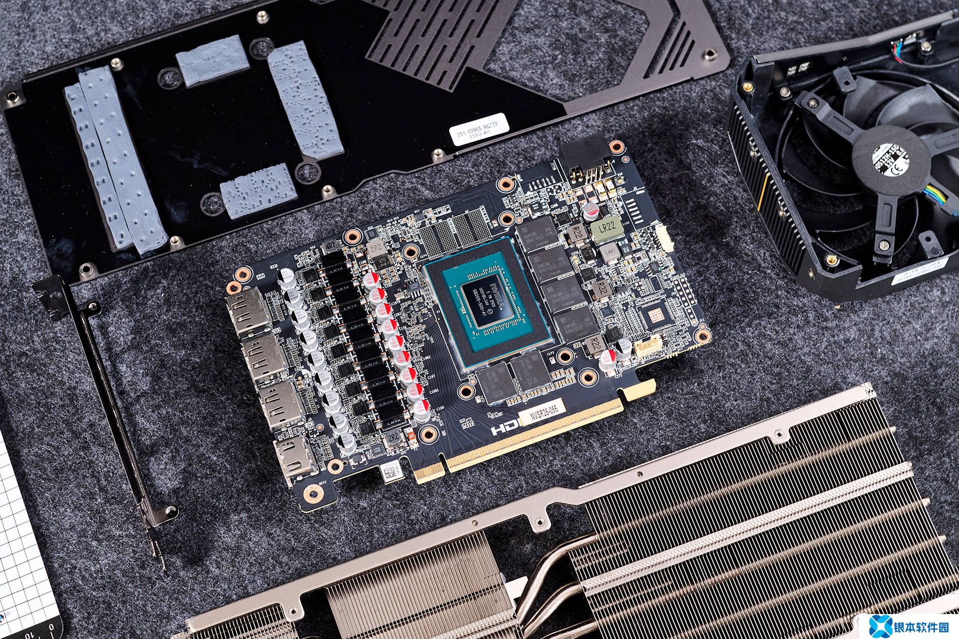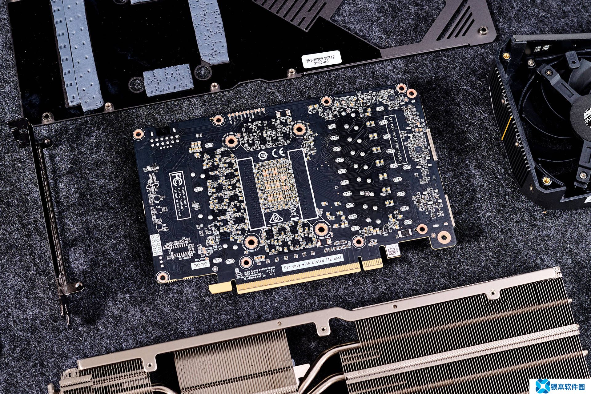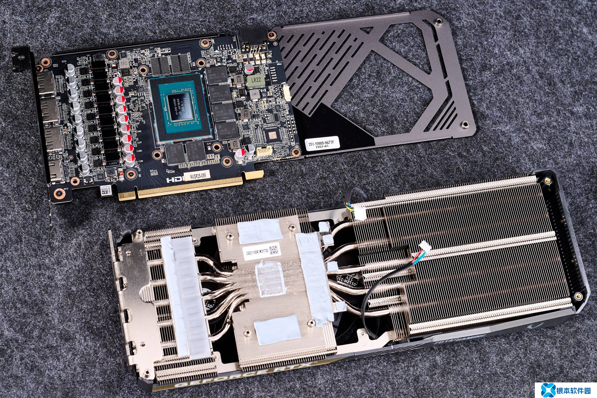在拆解过程中,特别需要注意的是,尽管采用了三明治结构,即PCB被夹在背板与散热器之间。但在移除背板上的螺丝后,首先需要分离的是散热器;PCB与背板仍然是通过独立的螺丝进行连接的。安装与拆解过程可能稍显复杂,但金属背板起到了独立中枢的作用,使得整块显卡的结构更为稳固。