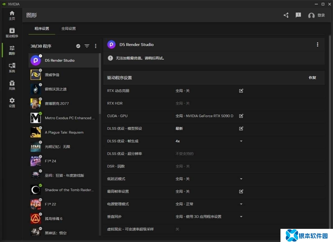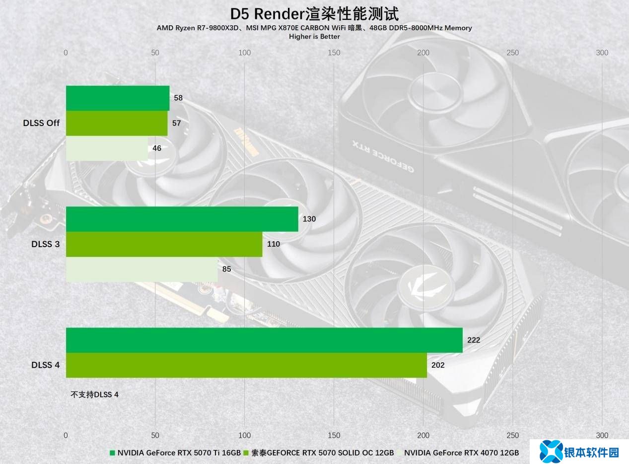 接下来是更为专业的D5 Render渲染器,其是一款基于DXR和光线追踪技术构建的GPU渲染器。正因为其有光线追踪技术,其渲染的画面相当出色。这款软件在RTX 40系显卡测试时支持了DLSS 3帧生成,而现在随着RTX 50系显卡的发布,它也可以通过NVIDIA App的方式支持最新的DLSS 4多帧生成功能。