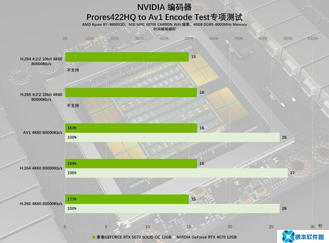 值得一提的是,GeForce RTX 50系显卡还能够支持4:2:2色度取样的视频编解码,这将节省的负担,加快创作速度。上面的图表里也可以看到我们的测试成绩,实测导出时间会比上代显卡快不少,毕竟RTX 40系显卡不支持该功能,仅支持4:2:0色度采样,如果一定要4:2:2导出只能靠CPU软解,因此耗时也是较长。