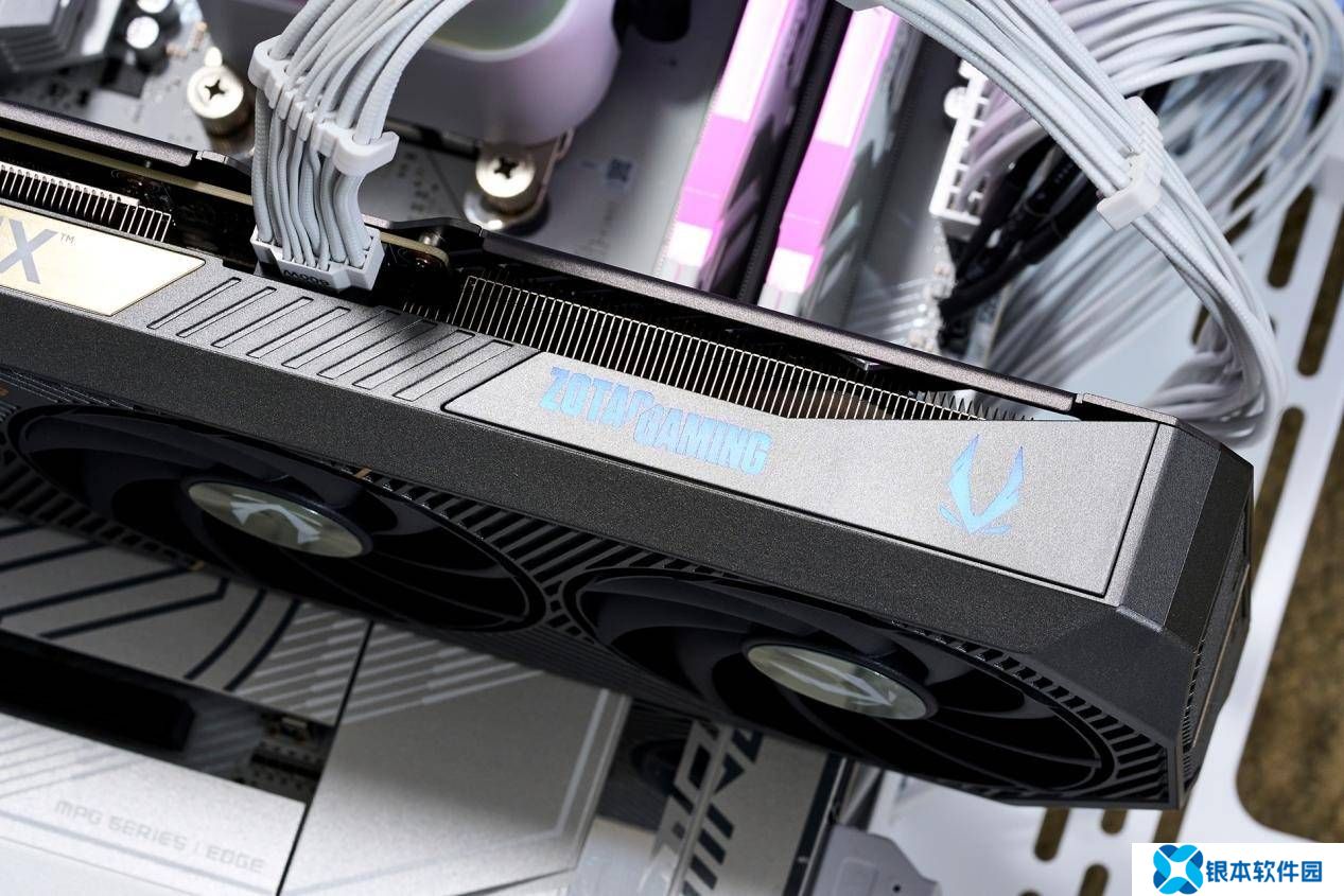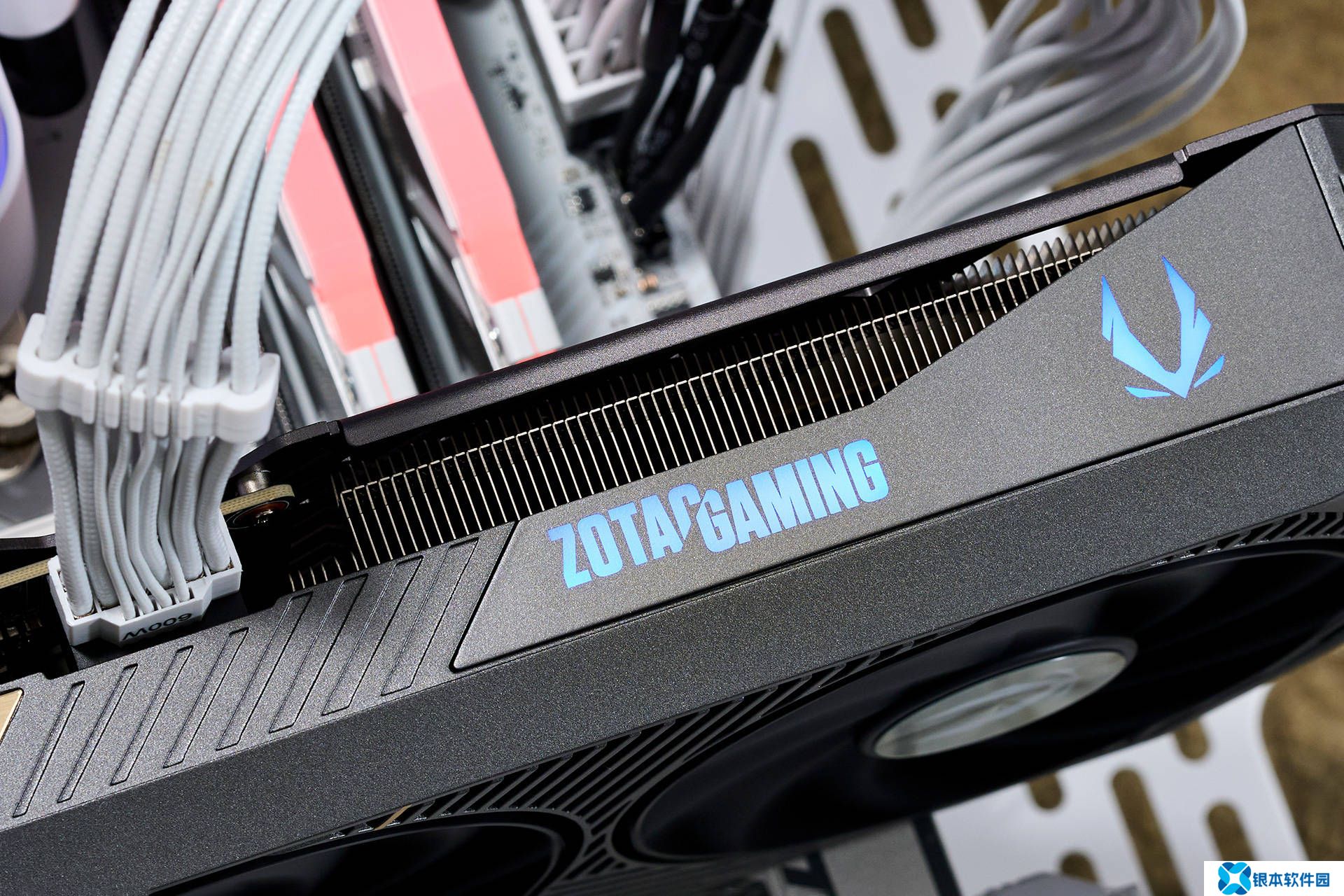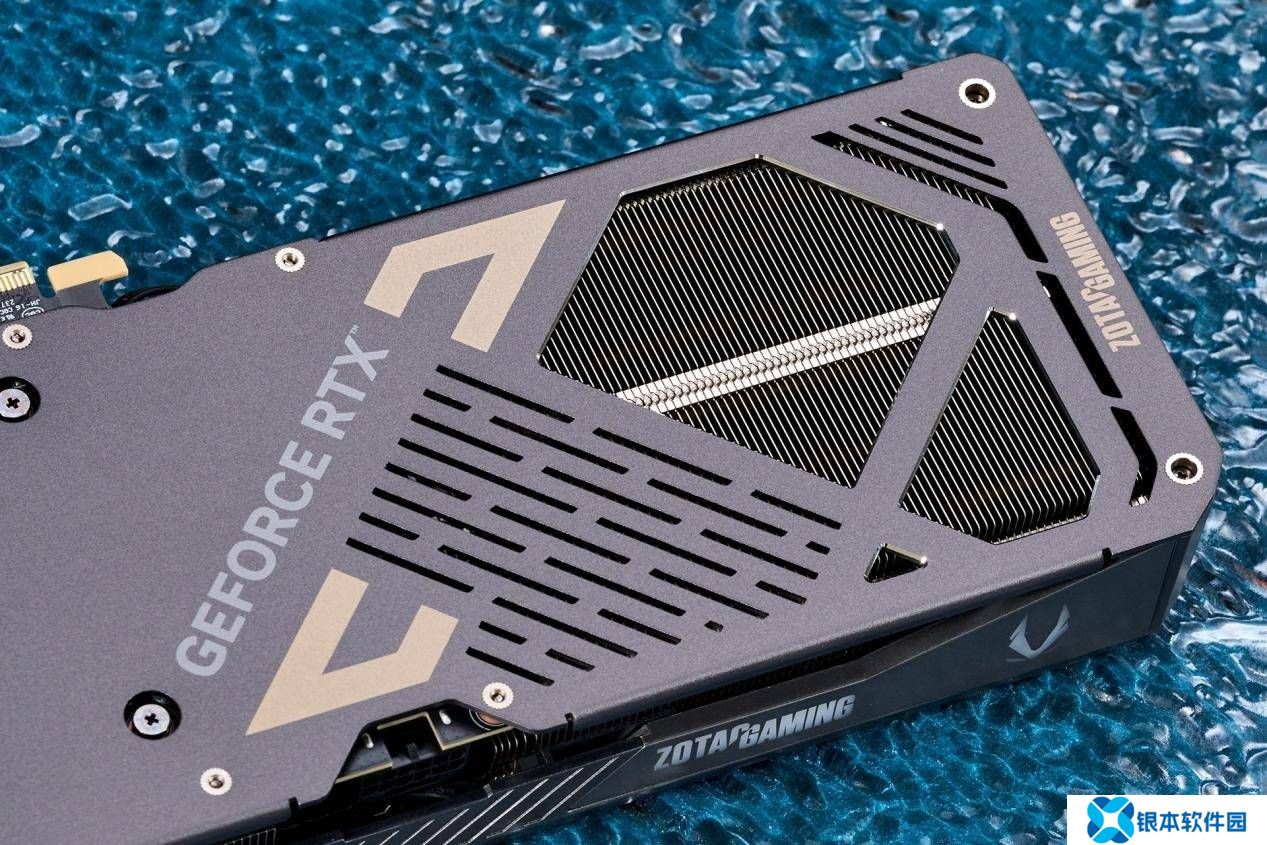 同时,背板巧妙地融合了ZOTAC GAMING的LOGO与字符,采用有序的斜切开孔设计,与上盖的栅条相呼应,进一步提升了显卡的细节质感。