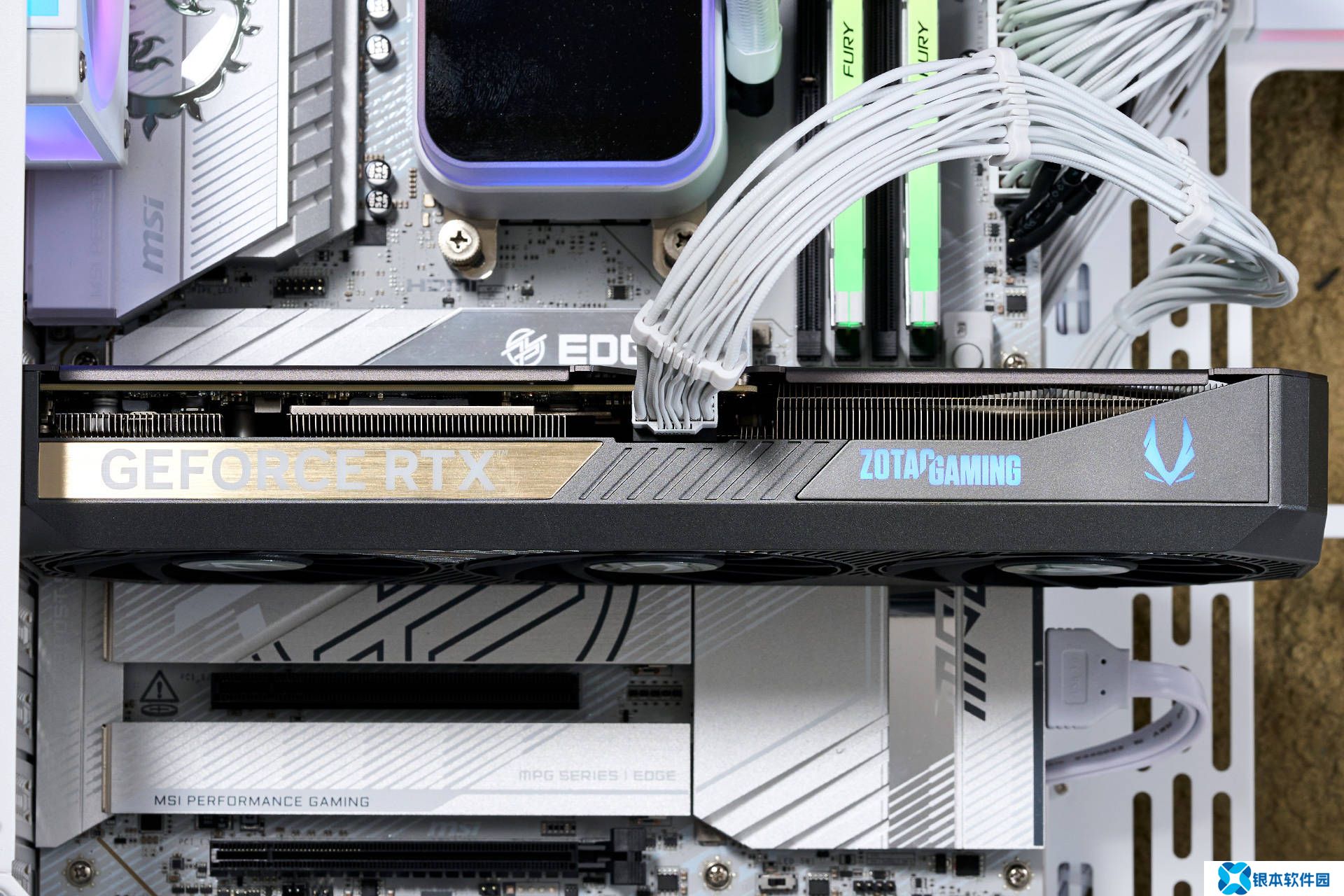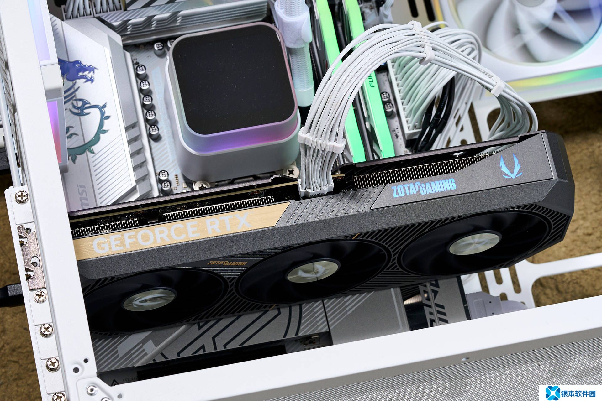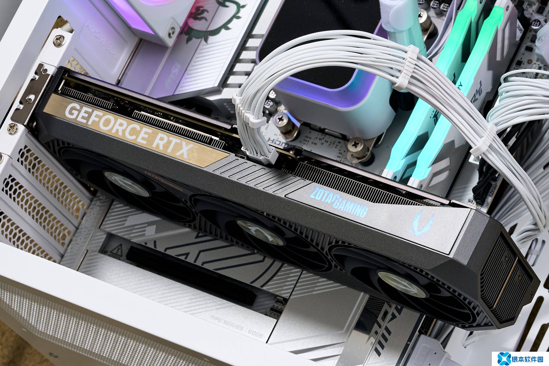 同时,背板巧妙地融合了ZOTAC GAMING的LOGO与字符,采用有序的斜切开孔设计,与上盖的栅条相呼应,进一步提升了显卡的细节质感。
