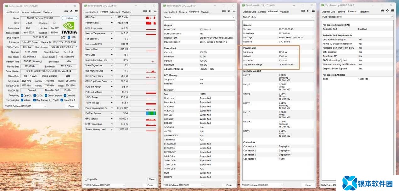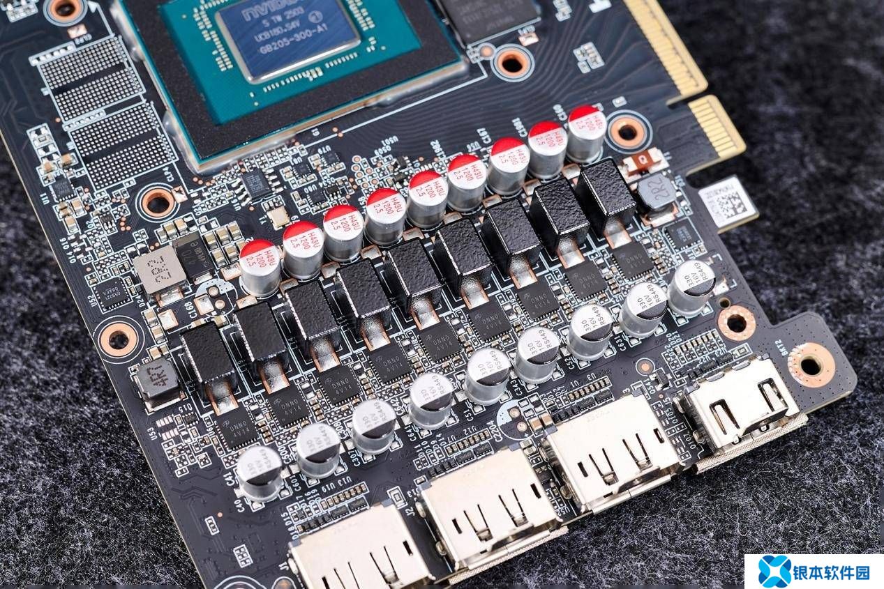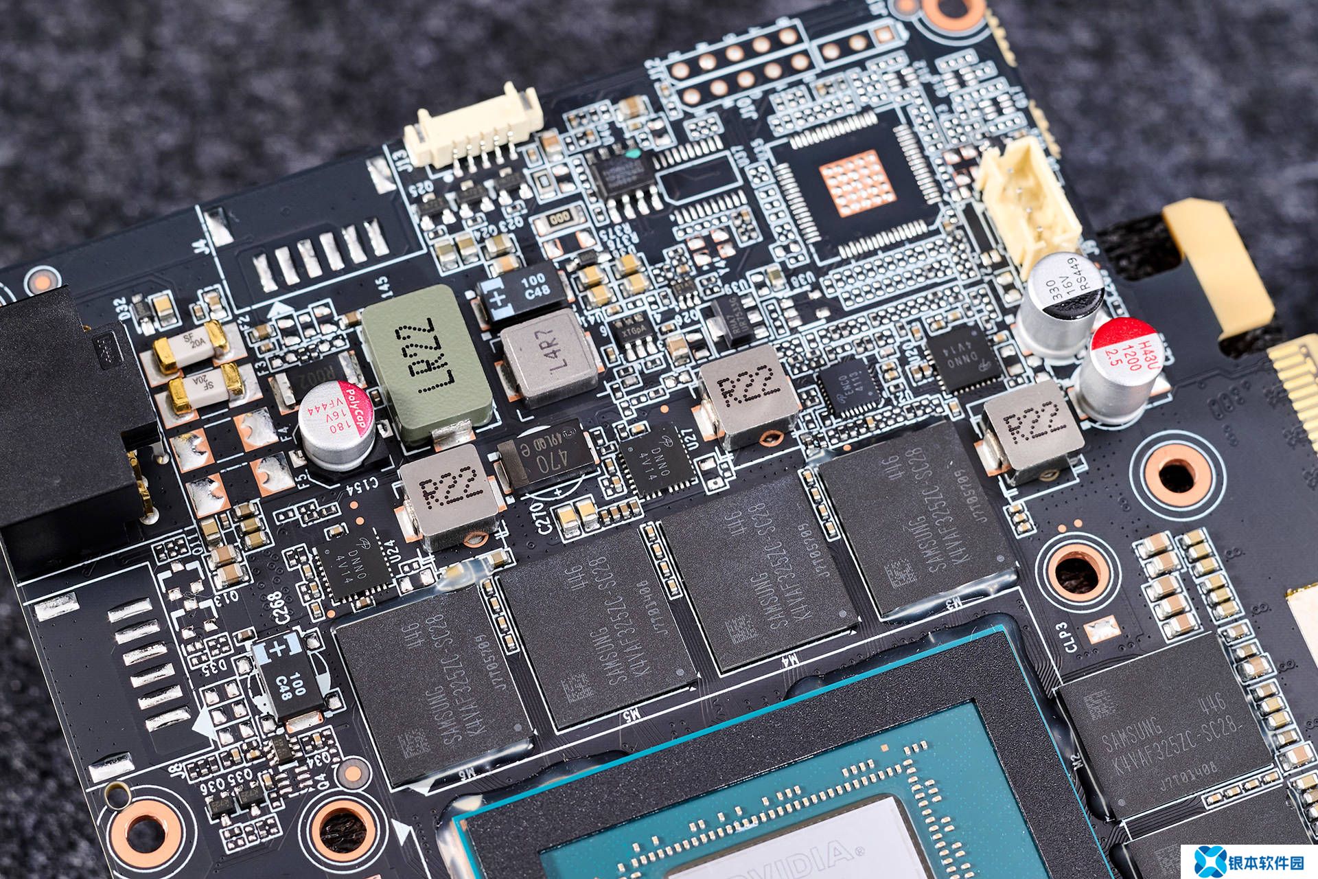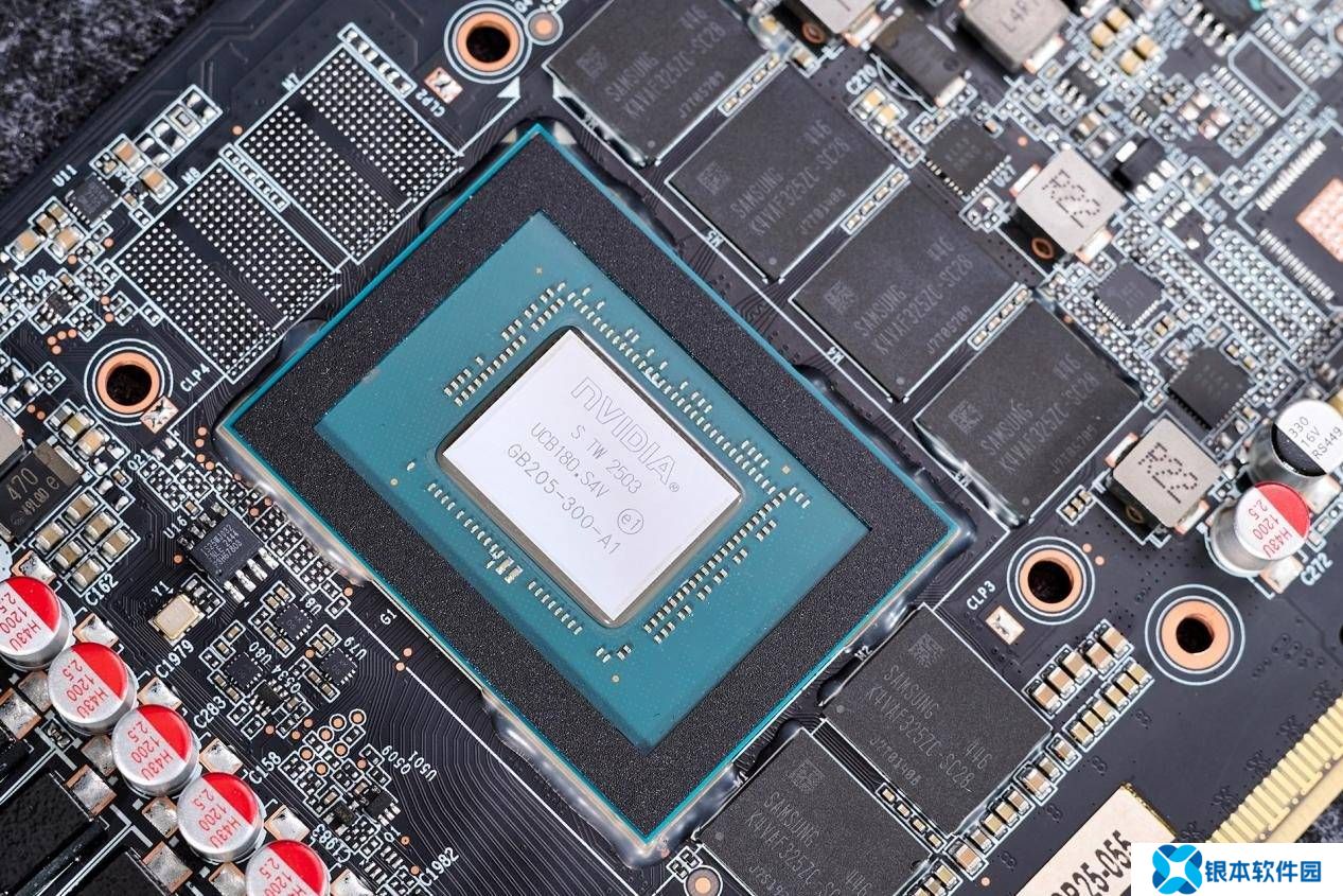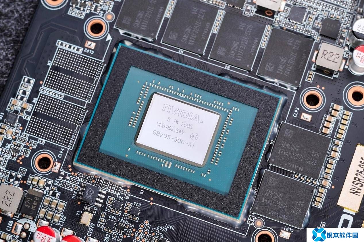 GB205-300-A1核心,以及6颗三星GDDR7显存颗粒;GPU四角与低位的两个显存颗粒分别进行了加胶加固处理。