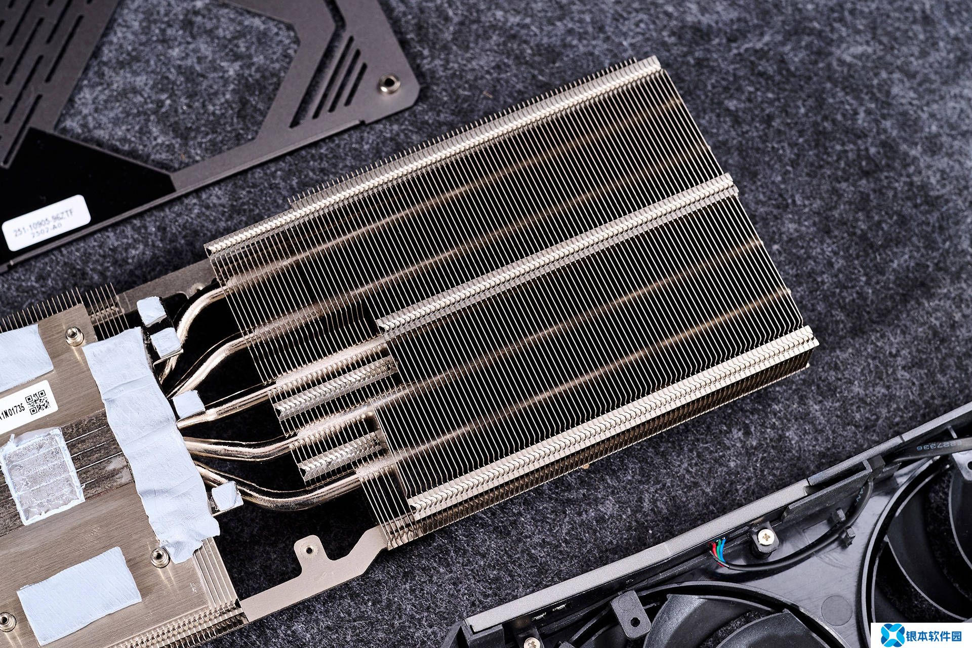 这款显卡的ICESTORM 2.0散热器主体实际上由三块大面积的散热片模组、5条镀镍热管以及热管直触GPU核心的结构组成。