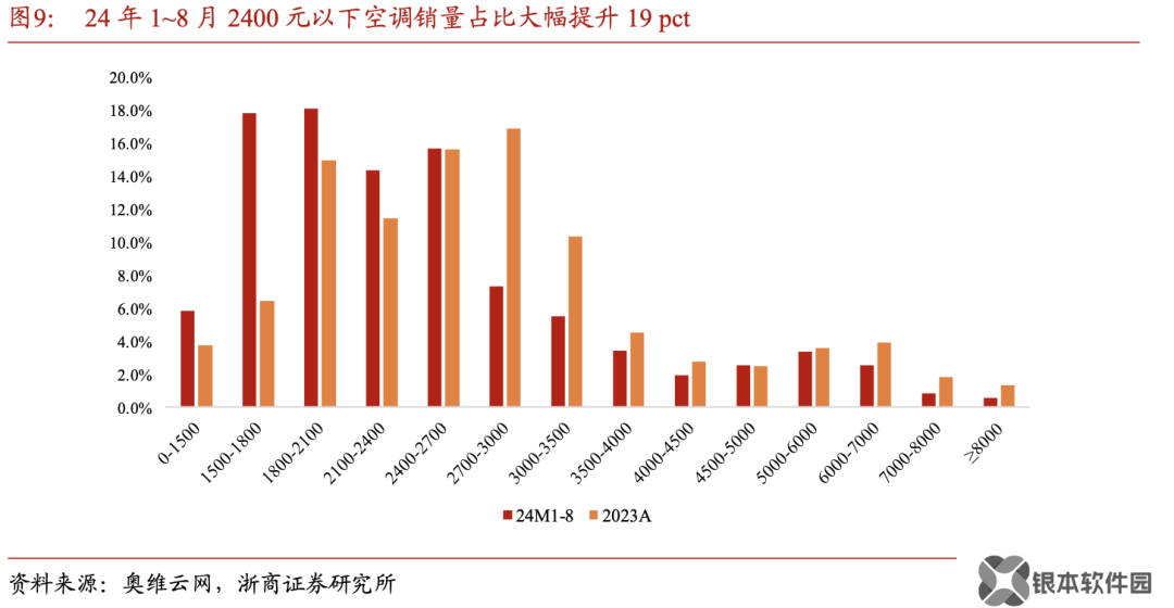 浙商证券研究提到,小米主打的巨省电PRO正好处在空调市场扩容最明显的2400元以下价格带。