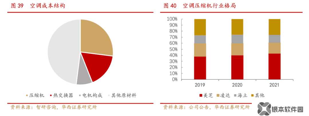 而从生产端看,华西证券指出,美的、格力均主要采用整机自产,且二者在上游均有较完善布局。以核心部件空调压缩机为例,根据产业在线,2023年美芝(美的)、凌达(格力)和海立合计市占率接近80%。)而小米空调当前压缩机主要采用松下、美芝、海立。