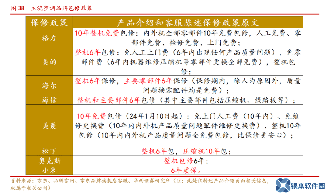 华西证券研究指出,从售后服务看,以空调产品的包修政策为例,主流家电品牌中只有格力、美菱是10年整机免费包修,也只有格力、美的、美菱是明确免人工上门费。