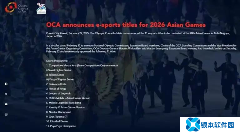 就在2025年2月22日,亚洲奥林匹克理事会(OCA)在其官网发布了新闻稿《OCA公布2026年亚洲运动会电子竞技项目名单》,包含11款正式成为2026年亚洲运动会电子竞技项目游戏。我们来一起看看吧。