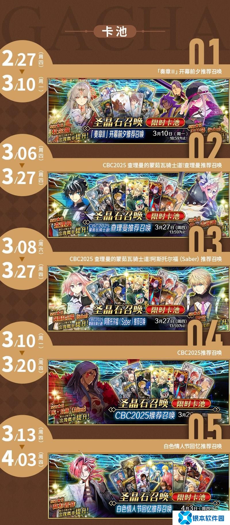 CBC2025 查理曼的蒙茹瓦骑士道! 阿斯托尔福(Saber)推荐召唤:SSR阿斯托尔福(Saber)/SR罗兰出现概率提升,卡池持续时间3/8至3/27。