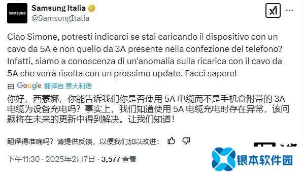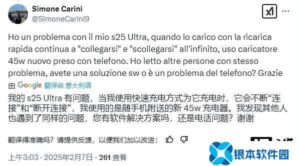 不仅在欧洲,意大利的用户也在社交媒体上报告了类似问题。一位用户表示,其Galaxy S25 Ultra在使用三星45W充电器和配套数据线充电时,设备会间歇性地连接和断开,严重影响了充电体验。