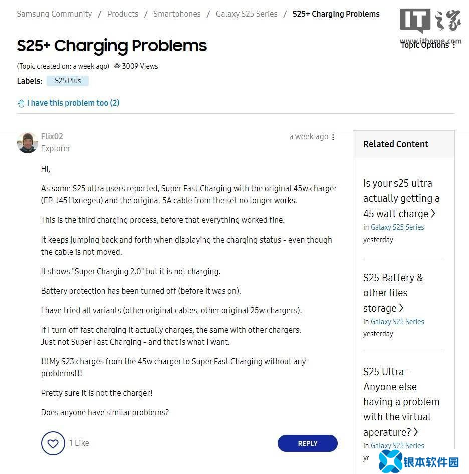 连接问题同样困扰着不少用户。在三星欧洲社区论坛上,有用户反馈称,使用三星自家的45W充电器和5A数据线为Galaxy S25+充电时,手机屏幕上会反复出现“超级快充2.0”和“未充电”的提示。关闭“快速充电”功能后,虽然可以正常充电,但速度大打折扣。值得注意的是,该用户表示其Galaxy S23手机使用同一充电器时并未出现此类问题,暗示问题可能出在新机型本身。