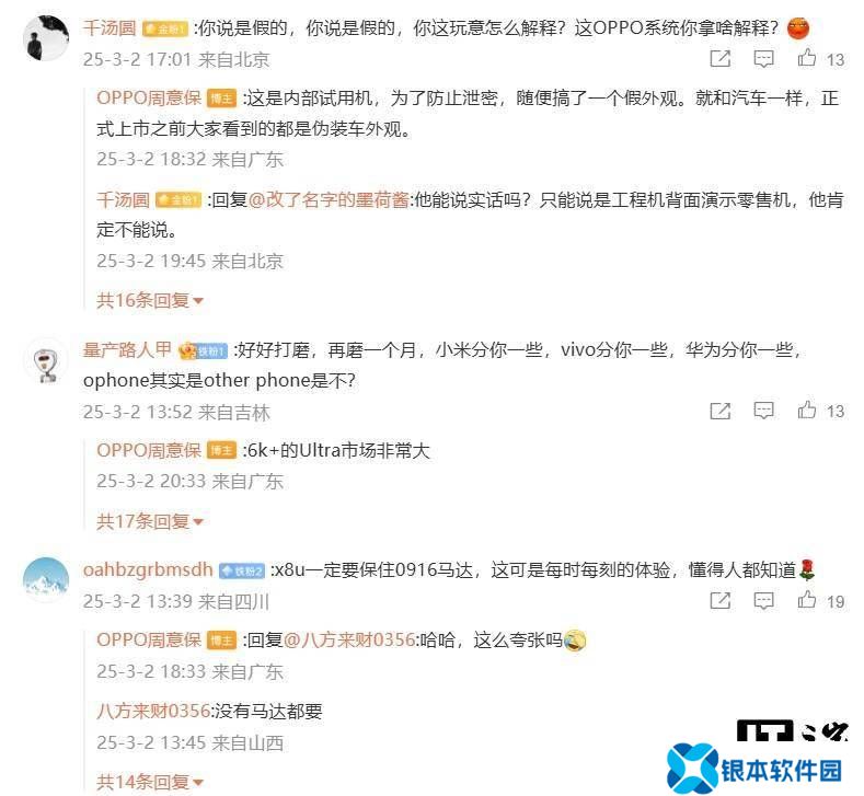 周意保还在评论区回复了部分网友的问题:针对网友的质疑,他表示“这是内部试用机,为了防止泄密,随便搞了一个假外观。就和汽车一样,正式上市之前大家看到的都是伪装车外观”;针对新机发布时间晚是否会被挤占市场,他回复“6k+ 的 Ultra 市场非常大”