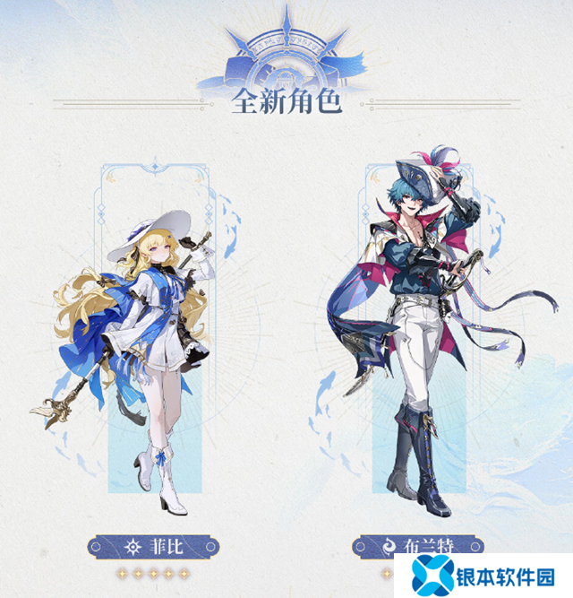 新版本中,将会实装新的共鸣者菲比(五星)、布兰特(五星),分布在上下两部分的卡池中。