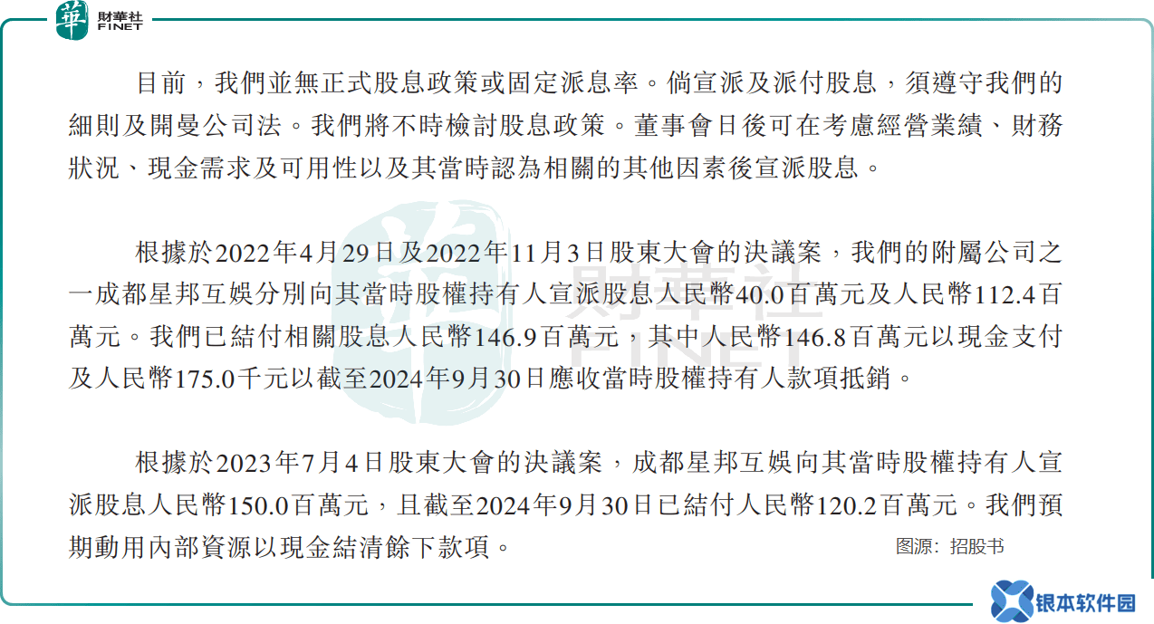 糟糕的业绩并不影响星邦互娱的分红政策,其于IPO前“突击”分红。2022年4月、2022年11月及2023年7月,公司分别宣派4000万元、1.12亿元及1.5亿元的股息。