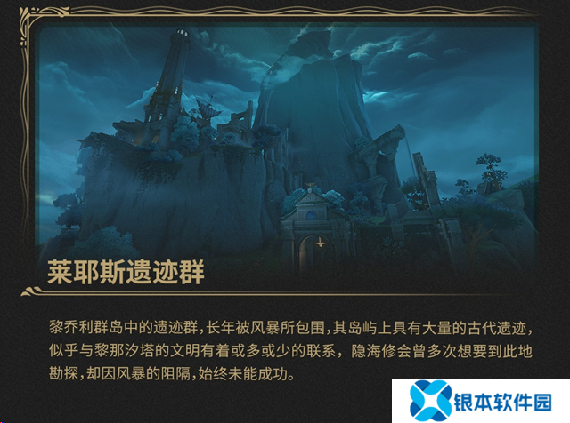 4.莱耶斯遗迹群:充满古代遗迹的小岛,长期被风暴环绕,似乎隐藏着与黎那汐塔文明相关的秘密,隐海修会多次试图勘探均未成功。