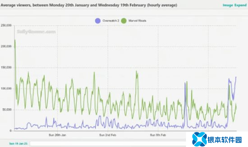 而且,这一上升趋势仍在继续。随着第15赛季的上线,带来了新的威能系统、战利品箱回归等内容,《守望先锋2》在直播平台上持续走高。2月19日,该游戏平均观看人数达到127,490,而《漫威争锋》则跌至57,577。