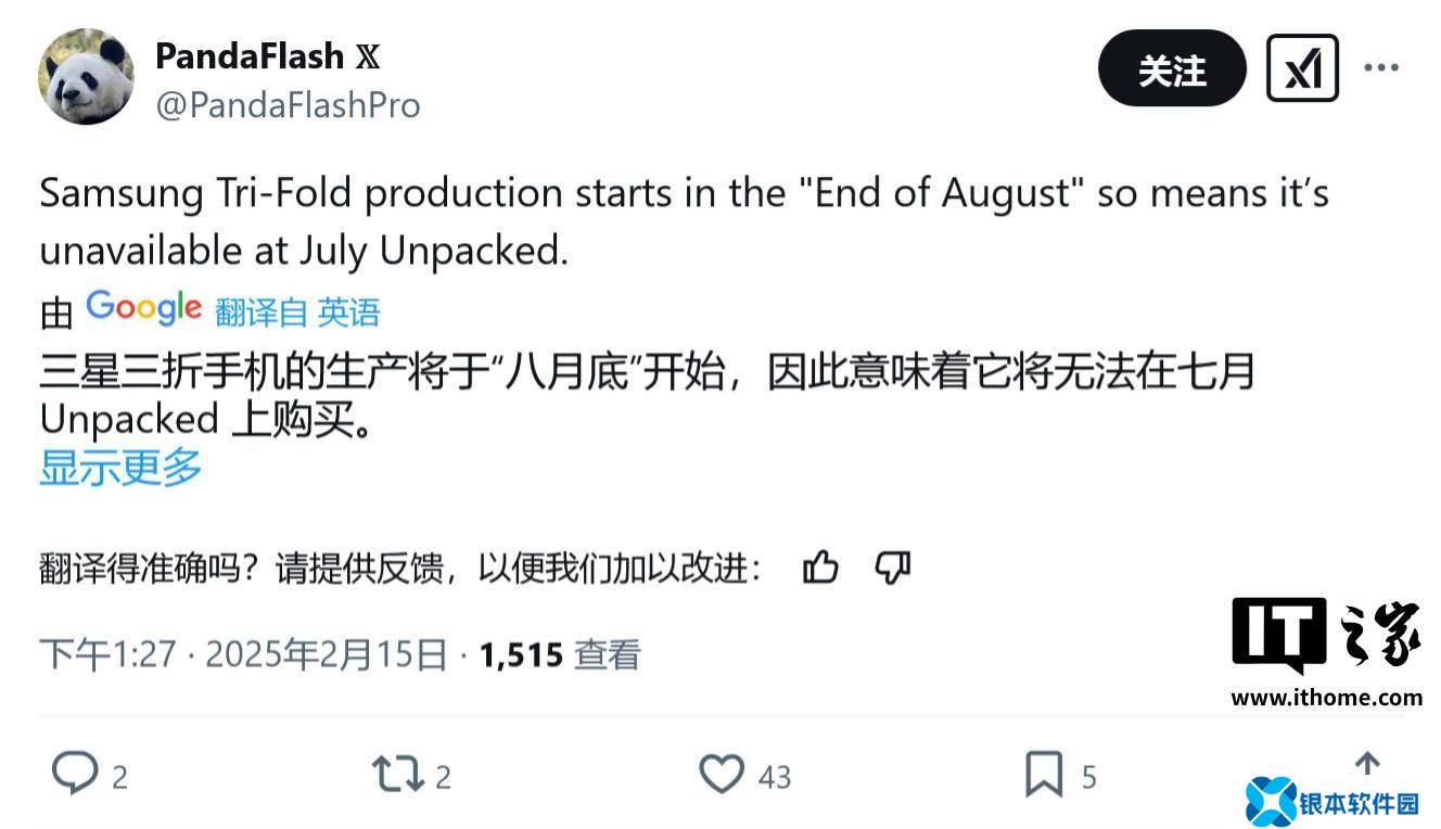 然而,与Galaxy Z系列相比,Galaxy G Fold三折叠手机似乎更加神秘。据PandaFlashPro透露,三星可能会在8月底开始生产这款三折叠手机。同时,顶级显示分析师Ross Young也证实,尽管G Fold的代号尚未最终确定,但其面板生产预计将在7月开始。这一信息表明,G Fold的发布时间可能不会与Galaxy Unpacked发布会同步。
